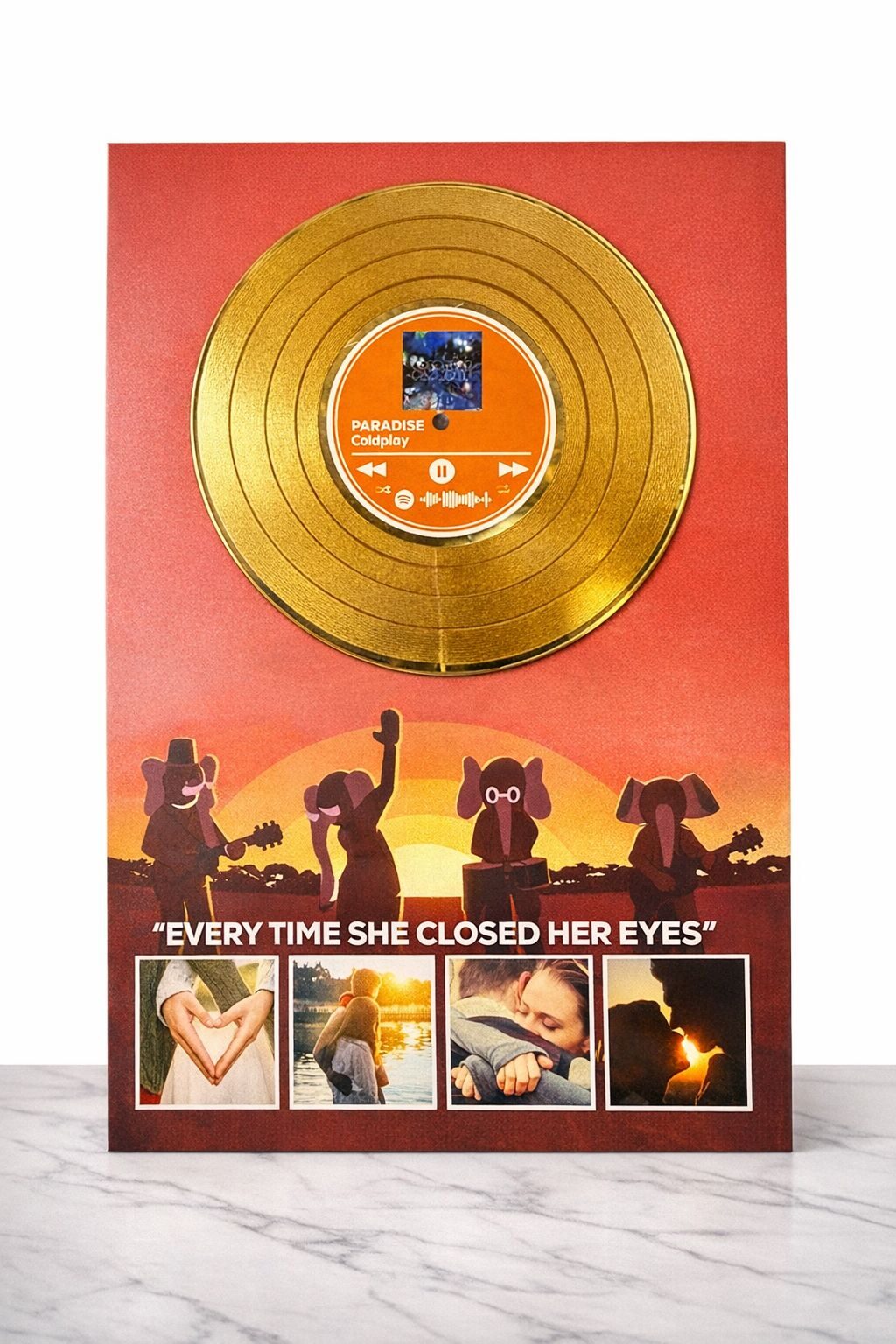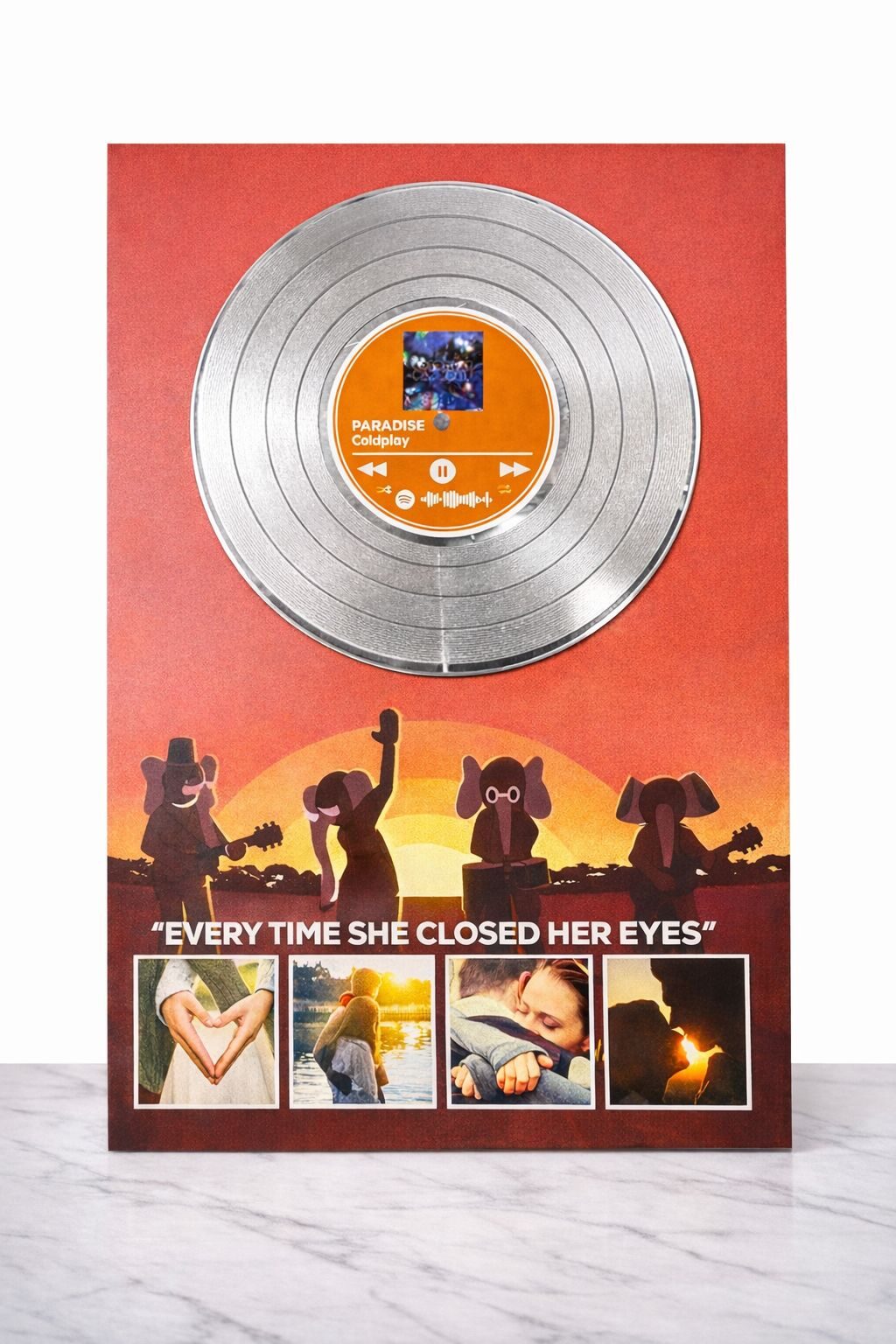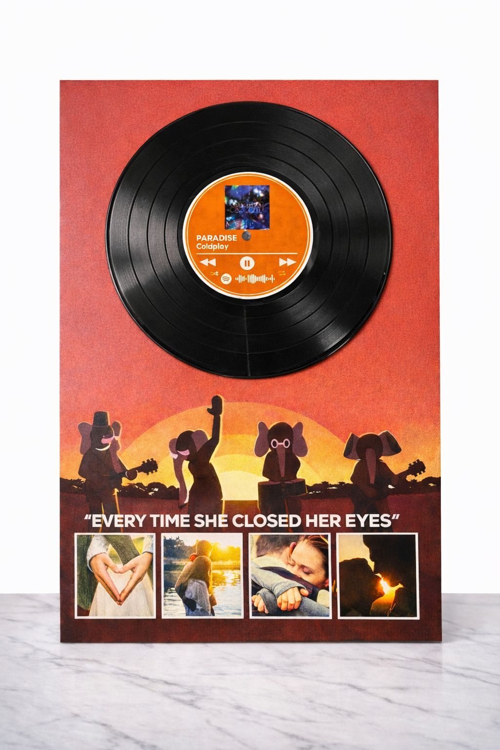 La base in Forex garantisce leggerezza, resistenza e un’ottima resa visiva, rendendo il vinile ideale come complemento d’arredo o regalo emozionale per San Valentino, anniversari, compleanni o occasioni speciali.